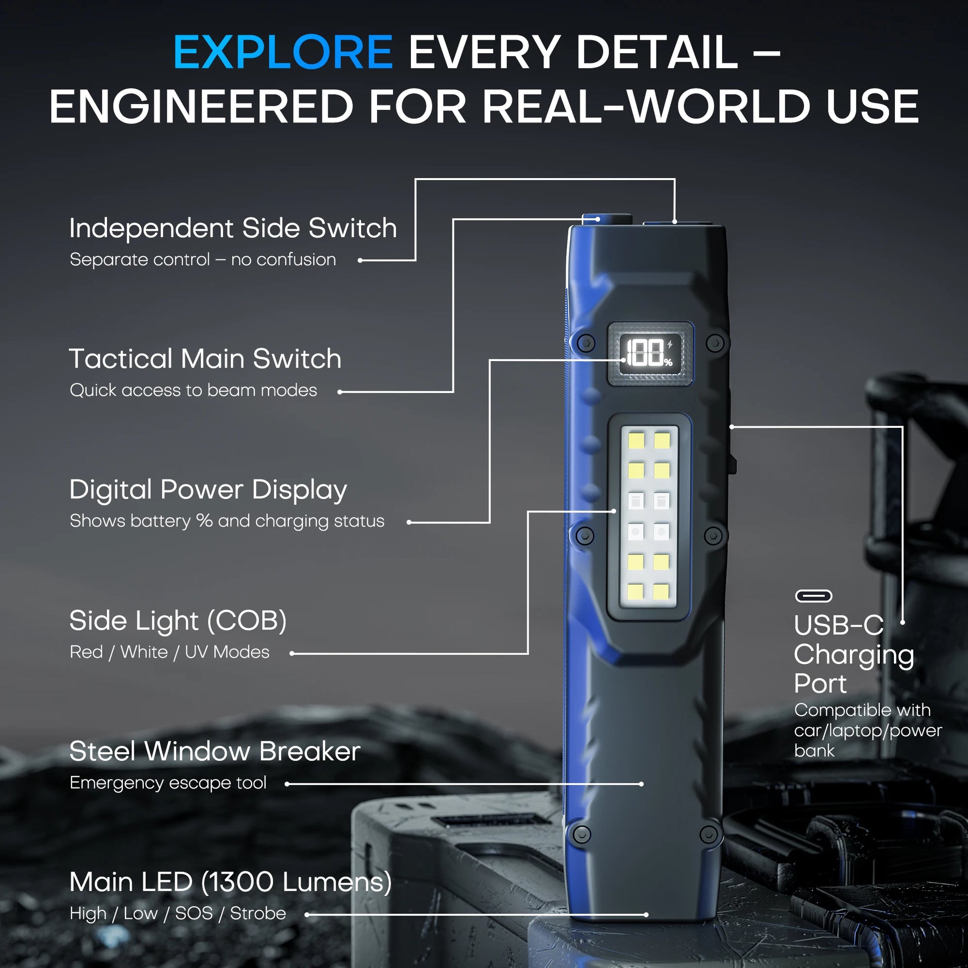 Designed for tactical, repair, outdoor, camping and emergency use.